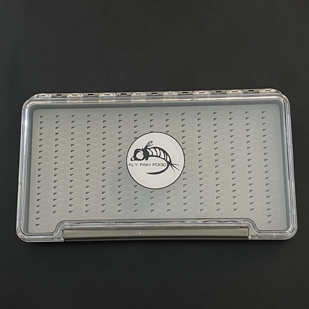 Adamsbuilt FLY FISH FOOD LOGO FLY BOX, CLEAR SINGLE SIDED – X-LARGE WITH EASY GRIP FOAM