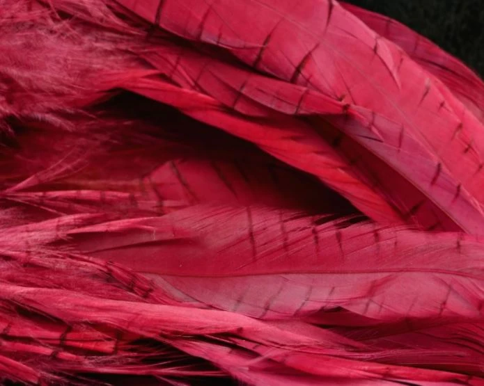 Long, special selected vibrant schlappen averaging 5″ to 7.5″ in length. Big streamers and winter steelhead flies are perfect for this feather. Not to mention it is also a great tail feather for your large predator flies like pike and muskie. Available in 34 colors.
