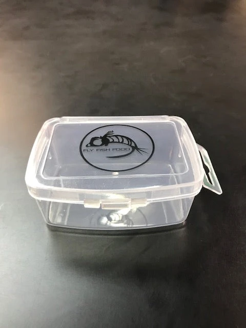 Adamsbuilt FLY FISH FOOD LOGO FLY BOX, CLEAR SINGLE SIDED – LARGE WITH EASY GRIP FOAM Fly Boxes
