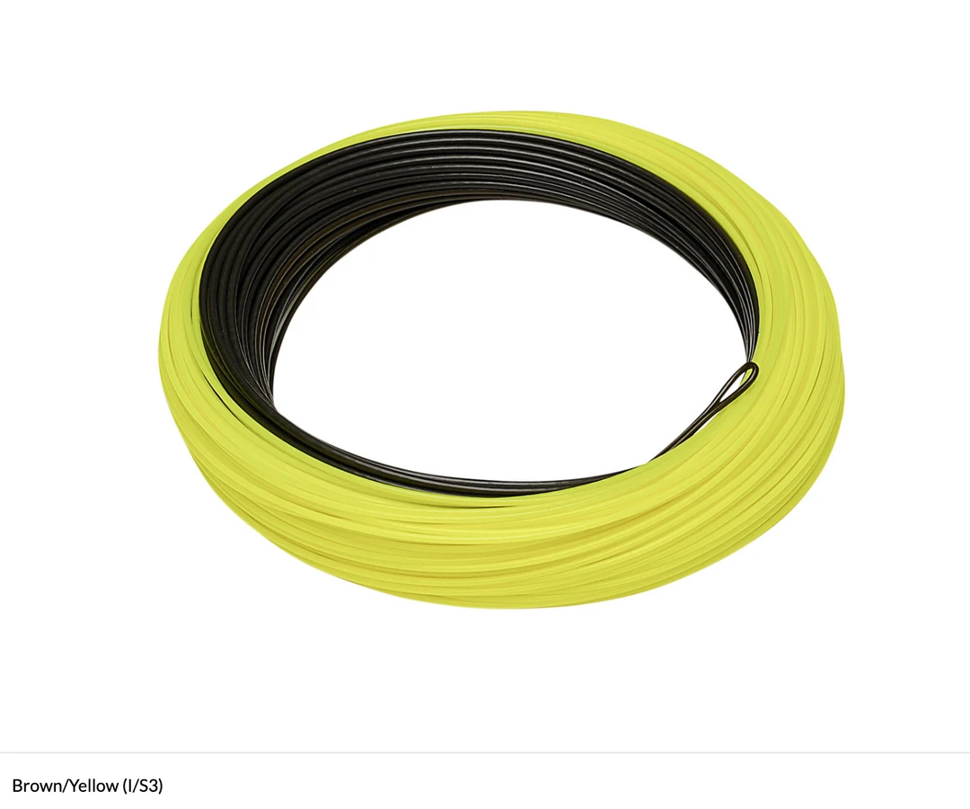 An intermediate line with a 30ft medium sinking , type 3 (3in per second) head – I/S3 (Brown/Yellow)