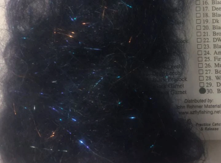 Arizona Mega Simi Seal, the bigger brother (i.e. longer fibers) to the popular Arizona Simi Seal, is a great lifelike dubbing blend that works great on leeches, streamers or other fly patterns where movement and color are key. El Sculpito and the Cheech Leech are great candidates for Arizona Mega Simi Seal!