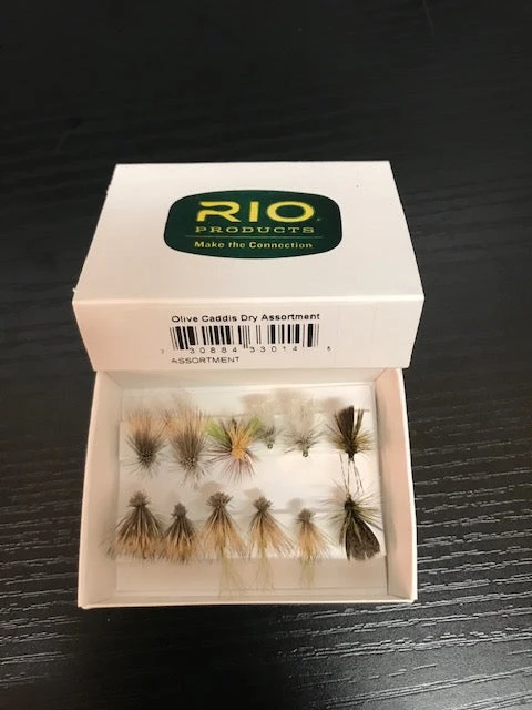 1 Dozen flies – Olive Caddis dry fly assortment by Rio. Includes