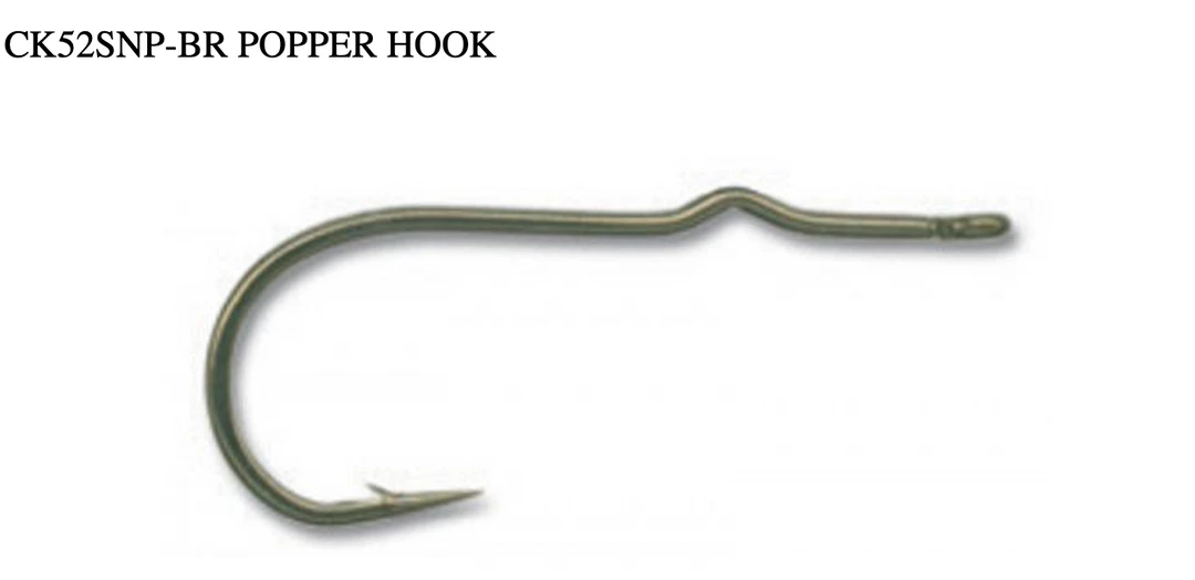 2XL, standard, straight eyed, fresh water popper hook with kinked shank, bronzed finish.